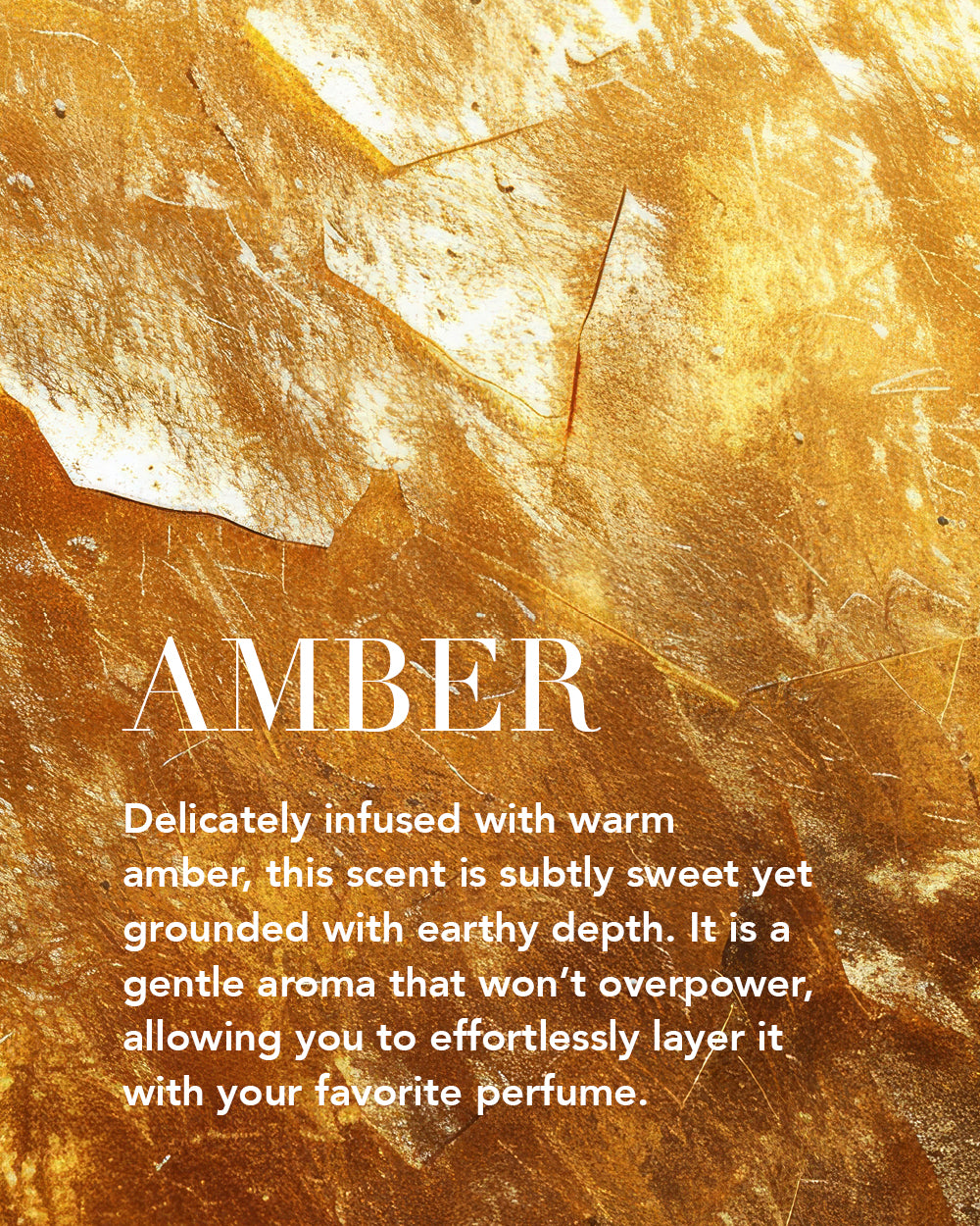 - Lightly scented with warm Amber, a warm and slightly sweet scent that still captures a sense of earthiness and depth. It will blend perfectly with your normal signature scent. We didn't want the Body Gloss scent to be so strong that you couldn’t layer on your favorite fragrance.