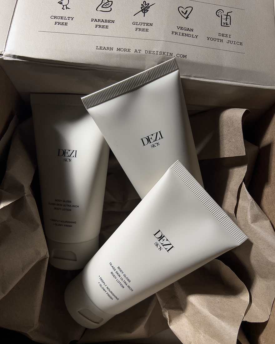 Massage in a circular motion to create warmth for better absorption and circulation. Use it on your legs, arms, décolleté — anywhere you need a glassy finish.
